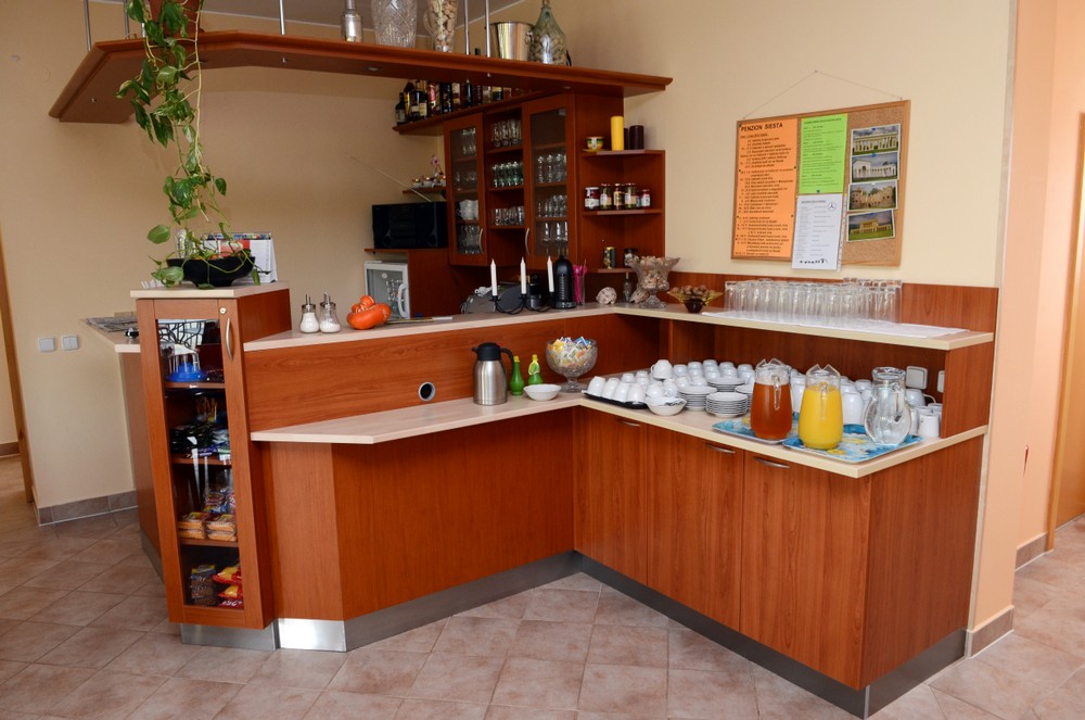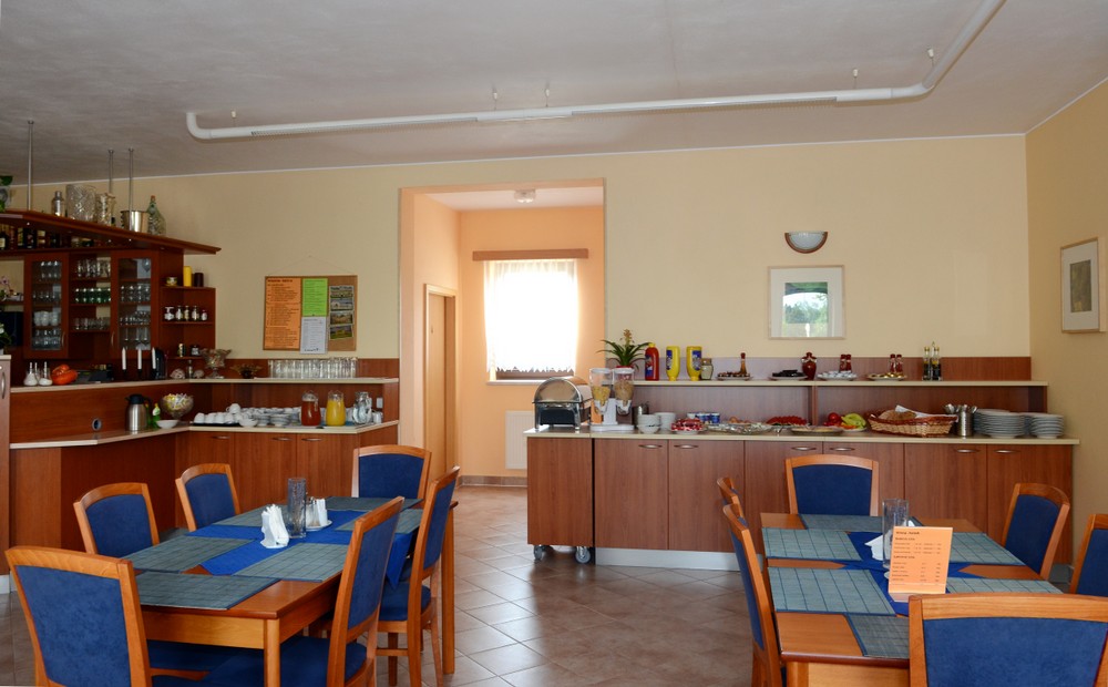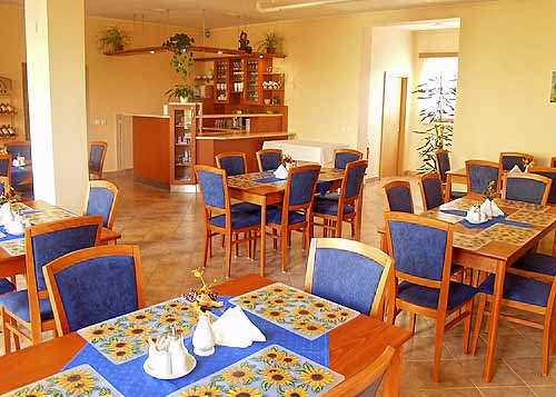 Prohlédněte si interiér jídelny a baru v Penzionu Siesta ve Valticích...